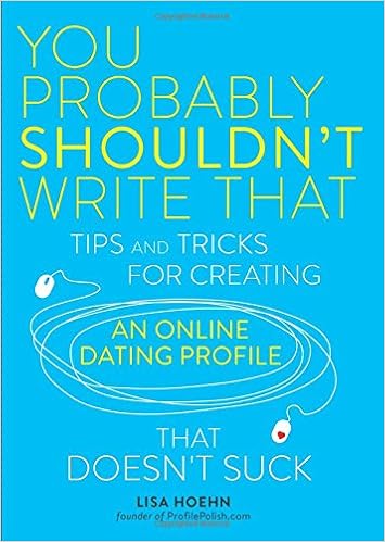 YOU PROBABLY SHOULDN’T WRITE THAT: Tips and Tricks for Creating an Online Dating Profile That Doesn't Suck (January 2016) by Lisa Hoehn, founder of ProfilePolish.com. Isn't online dating supposed to make finding love easier? Enter Lisa Hoehn, your ultimate online dating wing woman, and her book, YOU PROBABLY SHOULDN’T WRITE THAT. It's a complete guide to creating and revamping your perfect profile, from picking the right username, to choosing the right photos (good photos are more important than being good looking!), to helpful hacks for being witty and interesting. Lisa Hoehn is a freelance writer and the founder of Profile Polish, a personalized online dating profile makeover service that's been featured in The Guardian, New York Magazine, Business Insider, XoJane, more. She lives in New York where she's consumed innumerable glasses of wine in search of the perfect date.